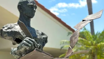 A statue titled "The Poet" located at the Hobe Sound Library